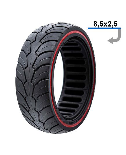 Ελαστικό Solid 8×2.5-6.1/B58 – red line για ηλεκτρικά scooter, το συγκεκριμένο ελαστικό δεν δέχεται σαμπρέλα και συνεπώς δεν χρειάζεται φούσκωμα.
